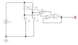- Realizujte obvod pro generování vstupních signálů (max. min.), ze spojitého signálu. Tyto signály (max., min.) použijte jako vstupy pro vámi navržený sekvenční obvod.